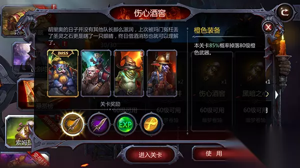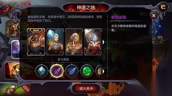 装备是《暗黑血统2》的重要玩法,玩家每提升10级即可装备更高阶的装备。装备的品质从高到低为白、绿、蓝、紫、橙色还有传说中的金色。紫色及紫色以上的装备就可以称作高阶装备。今天简单介绍下如何获取这些装备。 一、BOSS关卡 完成关卡内的BOSS关卡,将有小概率获得紫色装备。 困难指数:☆ 收益指数:☆☆