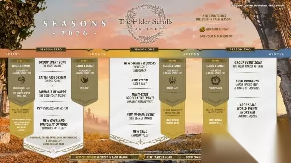 《上古卷轴 Online》正在进行的季节性重制规模庞大。章节和内容通行证已被弃用,转而采用更传统的三个月赛季模式。更多内容将免费向玩家开放,包括一些过去的DLC章节、以及未来的区域、任务和地牢。《泰姆瑞尔典籍》作为新的战斗通行证式系统登场。黄金海岸集市是获取回归装备的新途径。所有这些都极具变革性,像集市这样的元素现在可以在公共测试服务器中查看,不过需要注意的是,你所看到的实际物品可能会有所变动——这只是为了测试新用户界面。