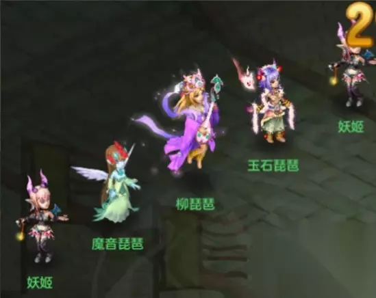 第二关打法介绍: 1、高明、高觉。蓝色雷神需要用法师攻击,红色则需要物理攻击。两只怪一起死亡,平分伤害。 2、最左边的虎头怪,使用力敌招式集火。