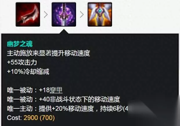 魔腾中单出装思路: 魔腾的中单依旧走纯输出路线,与劫和男刀这种传统AD中单一样以固定护穿装为主。第一件装备推荐幕刃,直接增强爆发,这样能充分发挥魔腾前中期的优势。第二件装备推荐出幽梦之魂,增加输出的同时还增加啦移速,可以加快魔腾前期的游走gank速度。之后可以直接补一件复活甲,因为魔腾是一个中前期英雄,需要尽快滚雪球建立优势,自然少不了频繁打架,复活甲在手可以大大增加的容错率。