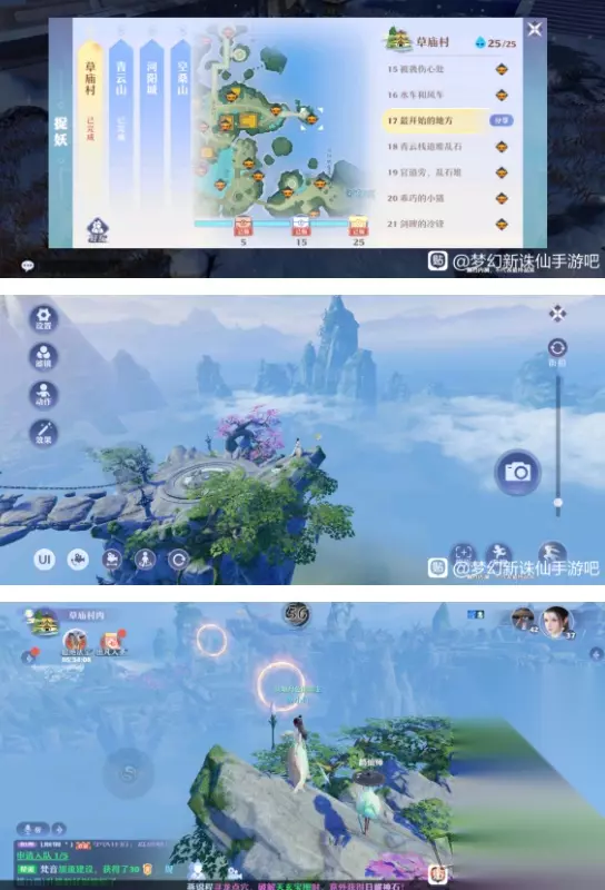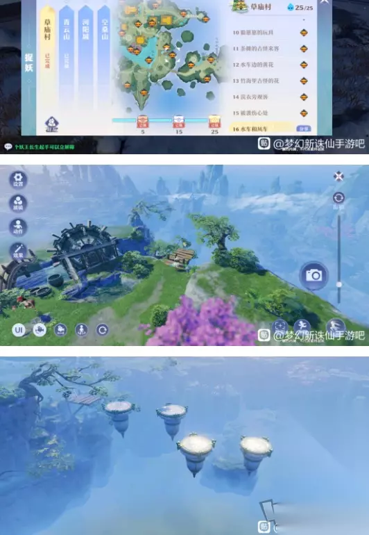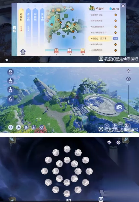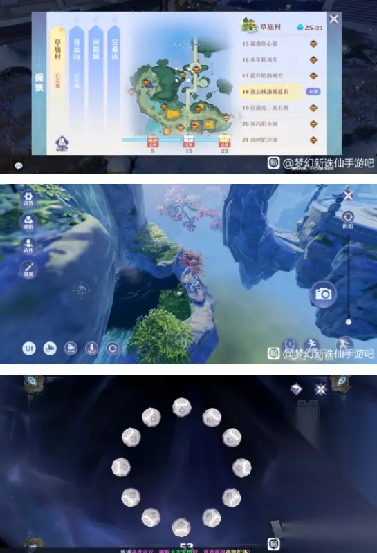 17.这个石台最边上的大石头上有个风车,点击风车出来这两个圈圈,我感觉这种圈圈最难飞,我每次都要飞三四次圈圈不需要每个都穿过,但是至少要穿过一个,要不然你的气息支撑不了你御剑飞那么远