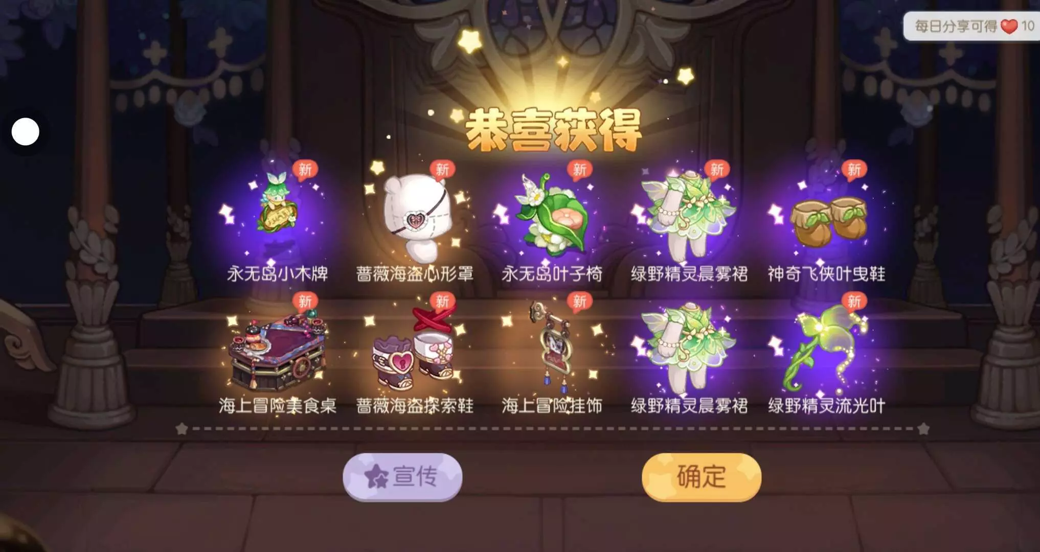 出了我想要的眼罩,我喜欢的紫女套也出了衣服知手持就是重复了(ó﹏ò。) 其他的也还可以,这个是小号出的,大号一点都不欧,┴─┴︵╰(‵□′╰)就出了一个金气死我了,奥比岛,你最好下给我一发十连出四金或五金。