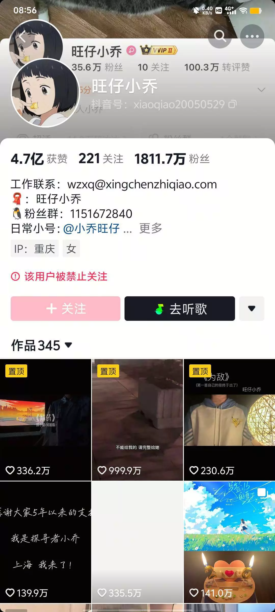 6,被禁止关注了,这个旺仔小乔蒙面参加演唱会,价格较高,引起顾客不满,一夜之间掉了400多万粉丝