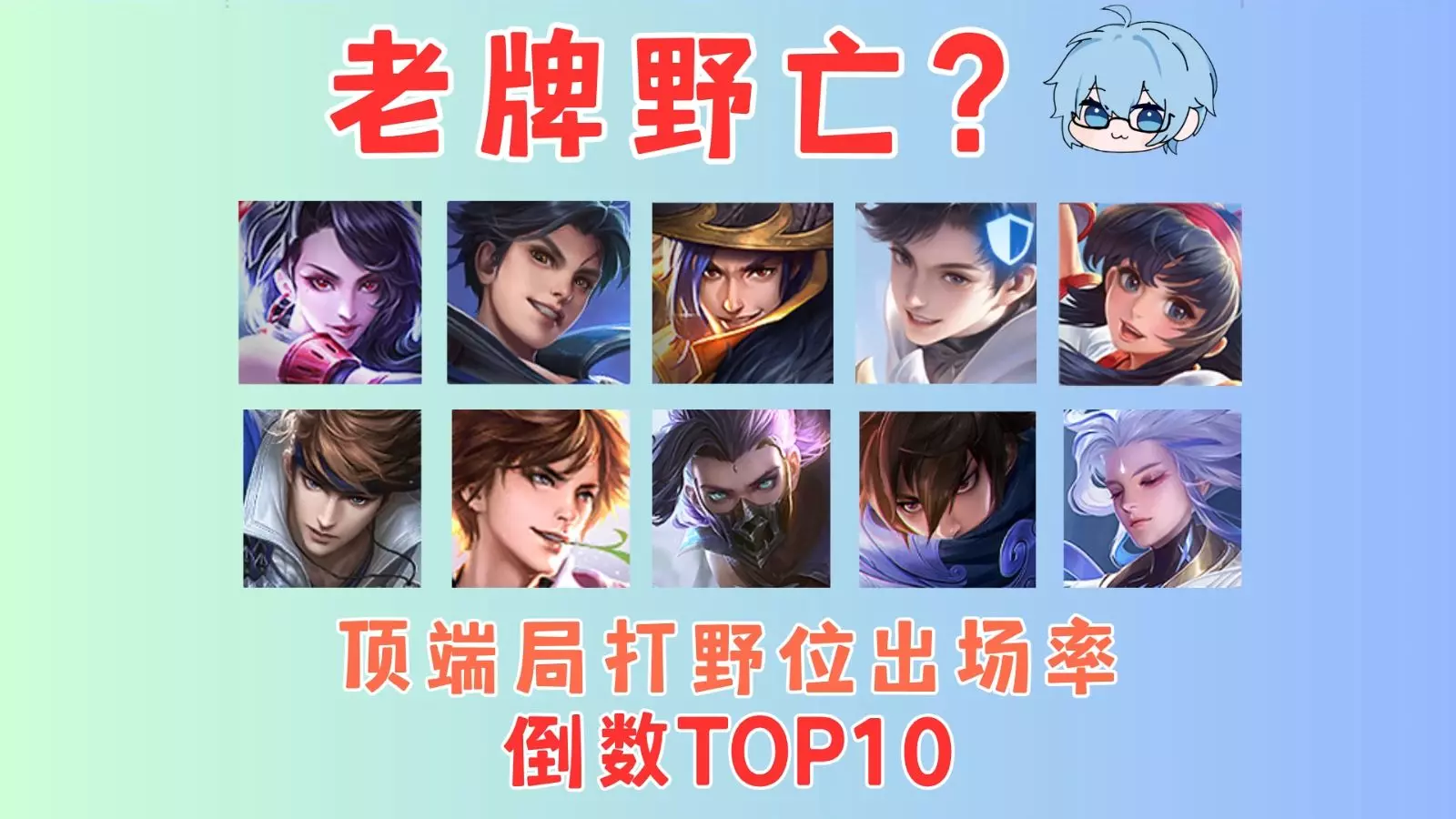 王者荣耀顶分段打野位出场率排行,数据来源天元之弈数据站,选取数据为巅峰千强的15日综合数据。欢迎王者一哥荣耀发财快报莅临监督。