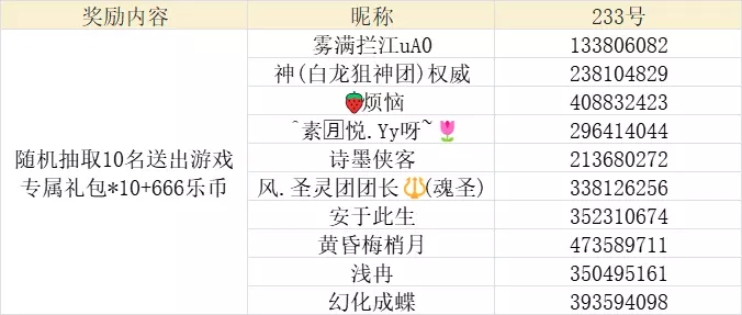 活动奖励:从正确参与活动的玩家中,随机抽取10名送出游戏专属礼包*10+666乐币
