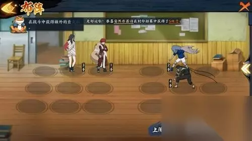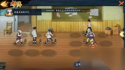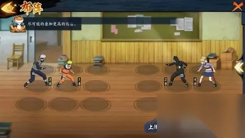 防御站位:利用奥义反弹伤害,保护队友。 过关方法:第一回合释放雏田奥义,第二回合手动点选牙释放丁次奥义,然后哪里亮了点哪里就行了。 过关思路:雏田开奥义抗住小李攻击,同时两人激活秒掉牙,注意丁次手位要比小李高,不然会先被小李打