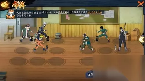 目标选择:优先攻击能对我方造成致命伤害的目标。 过关方法:第一回合释放鸣人奥义,第二回合手动点选再不斩释放卡卡西奥义,然后再释放丁次奥义。 过关思路:利用奥义杀死在后排的卡卡西,利用普攻杀死无敌人阻挡的小李,白有被动仁慈杀不死人不用管她。