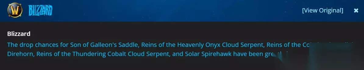 虽然谈判遇挫,暴雪全家桶面临撤出中国的囧境,但《魔兽世界》的世界服更新依然紧罗密布。蓝贴宣布已提高熊猫人之谜和德拉诺之王版本多个稀有坐骑的掉率,而游戏总监 Ion Hazzikostas在最近接受采访的时候暗示跨阵营公会已确定,上线只是时间问题。
