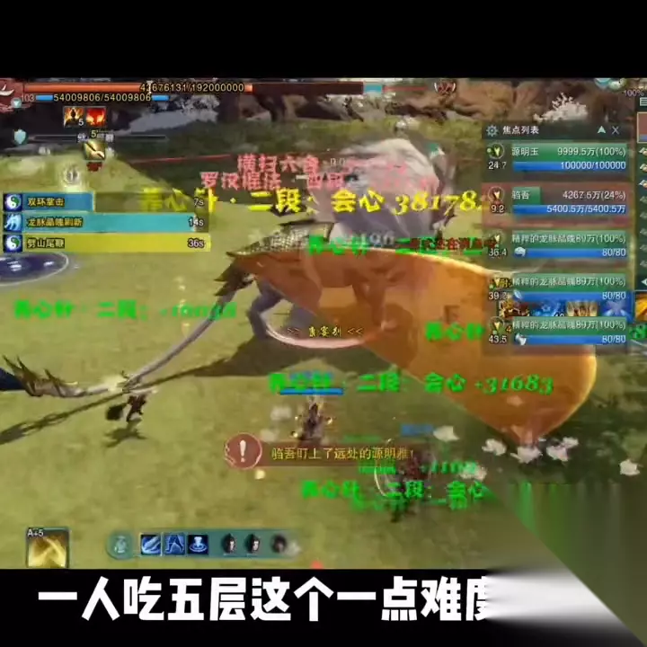 boss会有一个增益buff,需要吃龙脉精魄,吃到十层后投给源明玉,源明玉会消除这个增益buff,然后再打掉。如果只剩百分之三十以下的血量,就可以直接暴力地打下去了。这个也没什么难度,唯一需要注意的是满地图的(劈山)技能需要挂扶摇。如果忘记叫什么技能了,可以考虑去打英雄。英雄的木木比这个简单,不需要考虑移速等问题。当然,如果是两个人刷,还是打普通比较简单。每个人吃五层,一点难度都没有。