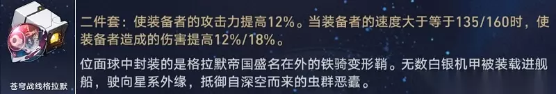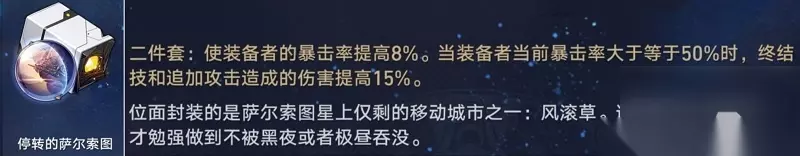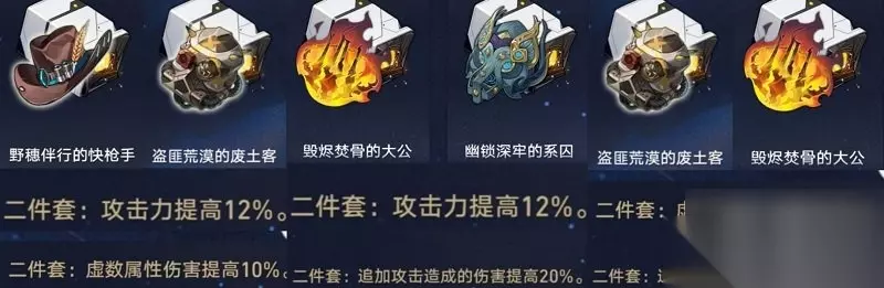 真理医生能吃到四件套的暴击率加成,若想吃到暴击伤害加成,则要强绑瓦尔特。但瓦尔特和真理医生的搭配也是很相适的,所以也可以选择带废土四件套。 提醒:新版本会出新的负面四件套,所以不必过度为真理医生刷取旧遗器,用词条好的2+2*2即可。 内圈推荐①: