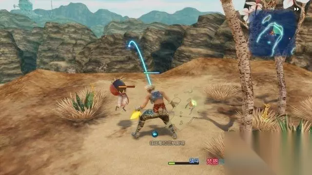 step10.在出发去找金恩之前,梵恩遇到同样出现在游牧民族聚落的潘妮萝。 为了不让梵恩再惹麻烦,她决定陪同梵恩去找金恩。 玩家可以安排潘妮萝自行战斗,又或者是选择手动操控(先安排梵恩的攻势,再安排潘妮萝的攻势)。 这时候有潘妮萝的陪同,梵恩可以在沙漠中刷刷怪,升个级。 在沙漠中要当心奴兽,它一击会造成梵恩60点伤害量。之前梵恩一个人是比较难对付,不过现在还有潘妮萝协助战斗就好很多了。