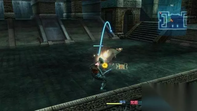 step2.在大桥上迎来第一个敌人,按Ctrl键,可以掏出武器,此时才可以进行战斗。 在战斗菜单中挑选战斗、魔法(黑/白魔法)或者是使用道具及逃跑。 这场战斗基本可以靠着其他骑士团同袍击败敌人。