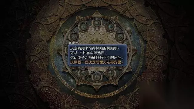 step4.要进行讨伐任务,托玛吉表示梵恩现在还未获得执照,所以不能装备,所以先从习得执照开始。 所谓习得执照,就是让玩家从12个职业中选择其中一个,执照板一旦决定后便无法再变更。在这里作12个职业的简单介绍。 白魔道士,借助精灵力量来使用恢复及辅助魔法的魔导士。魔法白魔法,(疗伤)恢复类、(防护)等辅助类。 枪骑兵,装备长枪的战士。能闪避攻击并以枪尖刺穿对手的铠甲。武器,长枪。招式苏生(牺牲自己HP以恢复伙伴)等。 机工士,盯上的猎物别想逃掉,擅长狙击的战士。武器,枪等。招式,劝诱(短时间让敌人成为伙伴)等。 赤魔战士,装备锤矛,武器攻击与魔法双管齐下的万能战士。魔法,里魔法(攻击类)、数种白魔法及黑魔法等。 骑士,灵活运用剑与盾,并以强力防具保护身体的战士。武器,剑。招式,暗黑(使用HP对单一敌人造成损伤)等。 武僧,以肉体为武器来对抗天地万物的战士。武器,徒手、棍。招式,阿基利斯(使敌人出现弱点)等。 时空魔战士,能装备弩,并使用操控时间与空间之魔法的魔战士。武器,弩、时空魔法(“反射”、“急速”等辅助类)。 破坏者,将一切灌注在武器上一口气挥下的破坏战士。武器,斧、槌。招式,攻击破坏(使敌人的攻击力受损)等。 弓箭手,擅长从远处发动攻击的战士。武器,弓。招式,盗猎(将敌人当场变成道具)等。 黑魔道士,操控构成万物的元素力量,咏唱攻击魔法的魔道士。魔法,黑魔法(“火焰”等攻击类、“沉默”等异常状态类)。 武士,舍弃俗世人情,将生命献给君主的剑士。武器,刀。招式,黑暗杀法(靠心眼打倒敌人)等。 猎长,跨越山河与国境,灵巧地应对战斗的战士。武器,匕首等。招式,急救(恢复频死伙伴的HP)等。