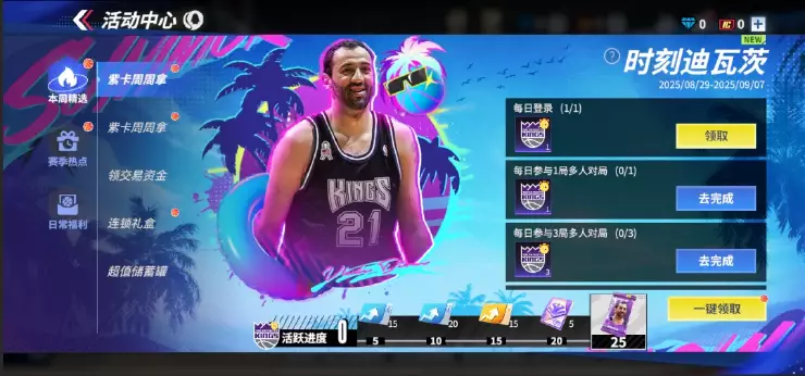 紫卡周周拿活动持续开启,在S3赛季中,我们选取了一些新球星以及热门球星用于赠送给兄弟们,让兄弟们能拿到更多有强度且有乐趣的球星进行体验。