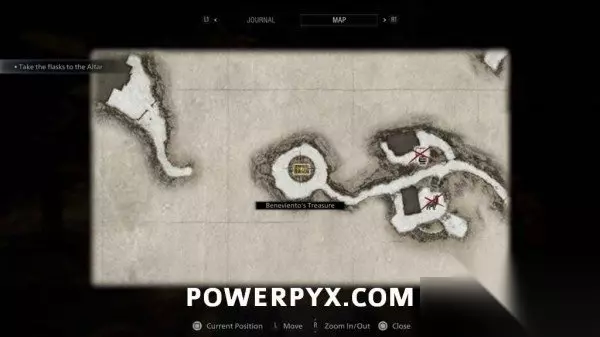 跟随剧情进度(拿到第二个玻璃瓶之前),8个宝箱会被公爵标记在地图上(但之前已经拿到一个了),宝箱中可能是武器,也可能是可出售换钱的道具(收购价很高)。 除了贝内文托的宝藏之外,其它的宝箱都可以在后续返回村庄时获得,但要在前往工厂之前(无法返回的时间点)。 ※下方宝箱按照时间顺序排列,除了贝内文托的宝藏之外,其它的宝箱都可以在后续返回村庄时(前往工厂之前)获得。 《生化危机8》全宝箱位置,宝箱解法攻略 1、路易莎的传家宝 此宝箱是你从蒂米特雷斯库城堡回来后可获得的第一个宝箱。穿过休耕地区域回到路易莎家,在房子前的台阶上可以看到此宝箱,打开获得【路易莎的项链】。