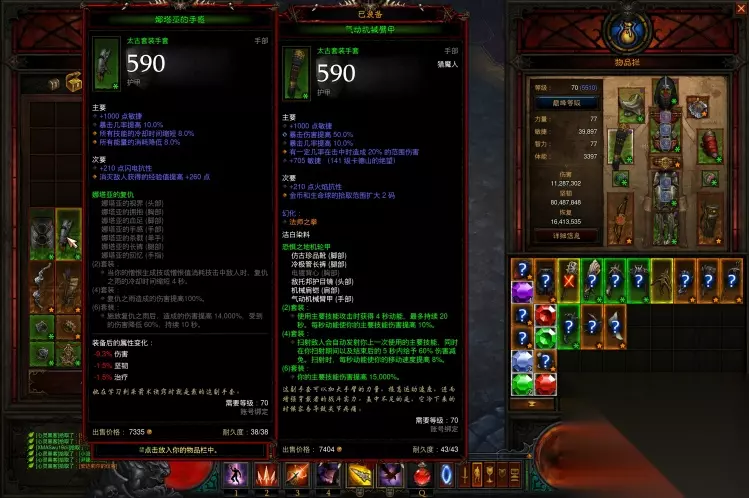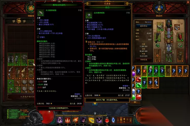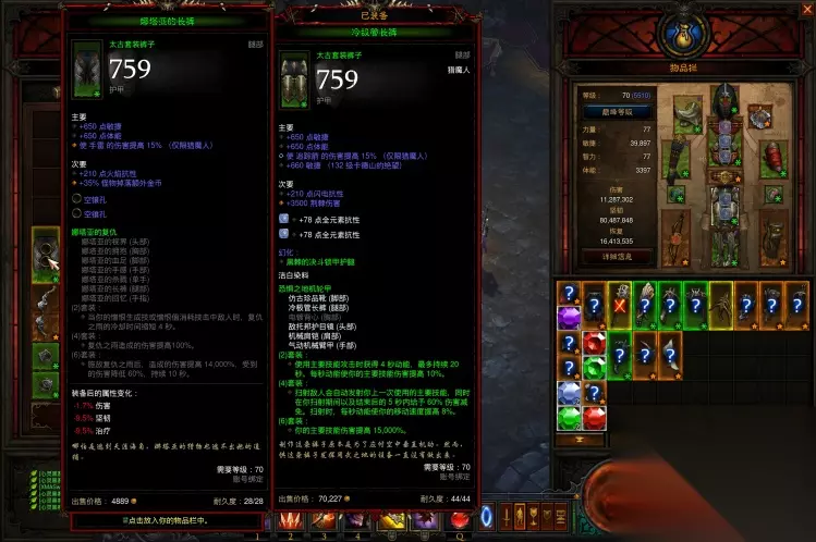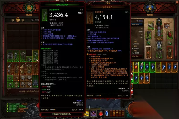 这里还忘记说了,娜套搭配的腰带,那肯定是崩天恨雨啊,4000%的武器伤害,苍蝇腿也是肉(没图,前期仓库没地方15硫磺了)。 二、娜套5+3适合时期 前面说过了,在前期冰吞或其他装备不全时,可作为过渡套装来进行使用,后期实在闲的无聊,可凑一套极品去冲冲层,刷刷天梯榜。在赛季中期不建议娜套速刷以及冲高层,机制和上限的原因,简单干脆明了。 娜套还是具有收藏价值的,毕竟冠以娜塔亚之名,对吧!(娜塔亚,猎魔的祖宗) 以下是@血色荆棘大神对娜套5+3的补充说明,万分感谢 关于娜套5+3 1、相比冰吞伤害低,但坚韧高。伤害上少了对戒,6件套只有140倍,少了狼,另一个戒指戴乔丹还是全能都赶不上对戒,但坚韧上多了6件套的60%减伤,相当于多带了一个残影之戒。 2、肯定不能带旅者套,要输出就得扫射,扫射就不可能站住叠伤害,逻辑跟冰吞一样的,与旅者套八字不合。 并且接上一条,5+3不缺坚韧,缺输出,这套戴旅者可以视为纯+50%减伤了,项链+戒指换来50%减伤太亏。 另一个戒指位基本就是全能或者乔丹,项链还是斯奎特看脸保持buff。 3、跟冰吞一样的,输出还是靠吞噬箭,九号、猎手之怒、深渊挖掘裤一个都不能少,复仇之雨纯纯的buff工具人,腰带必须是猎手之怒,没有这个2倍增伤,直接要少七八层,这个不是蚊子腿能补上来的。