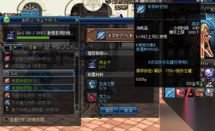 扔进商店的价格 近日便有一名网友非常无私的发帖,分享了自己的赚钱小方法,即通过制作专家HP/MP等药剂再直接甩到商店的方式来赚取差价,一枚药剂甩到商店的价格为320元,那么制作材料的成本又要多少呢?就由小编来为大家计算一下,首先制作专家级药剂需要龙之心和生命之息两种材料,而这两种材料玩家们均可以在拍卖行里购买得到,十分的方便!