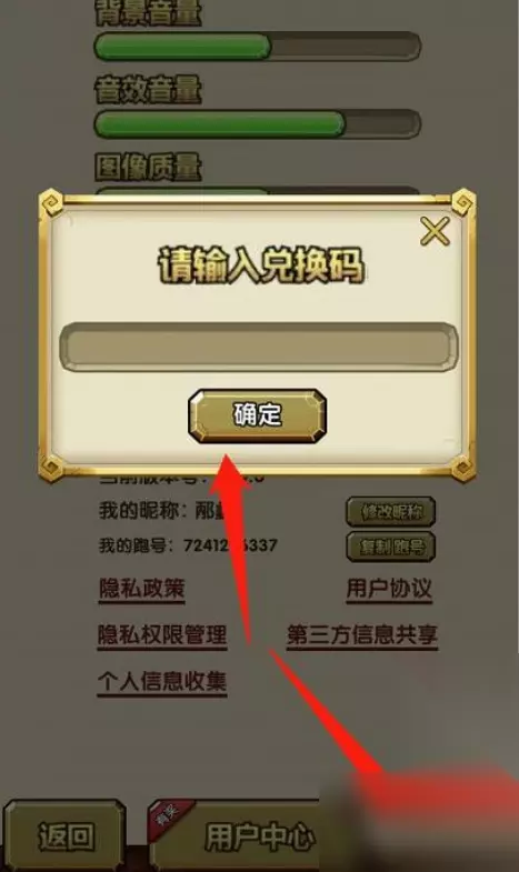 3、在设置界面中玩家点击右下角的兑换码,然后在输入框输入后点击兑换即可