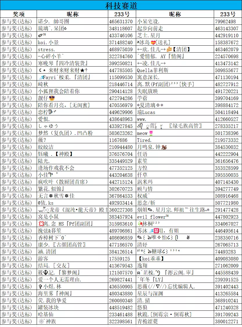 4、部分玩家有出现变更昵称等情况,获奖情况以消息推送、233号为准。