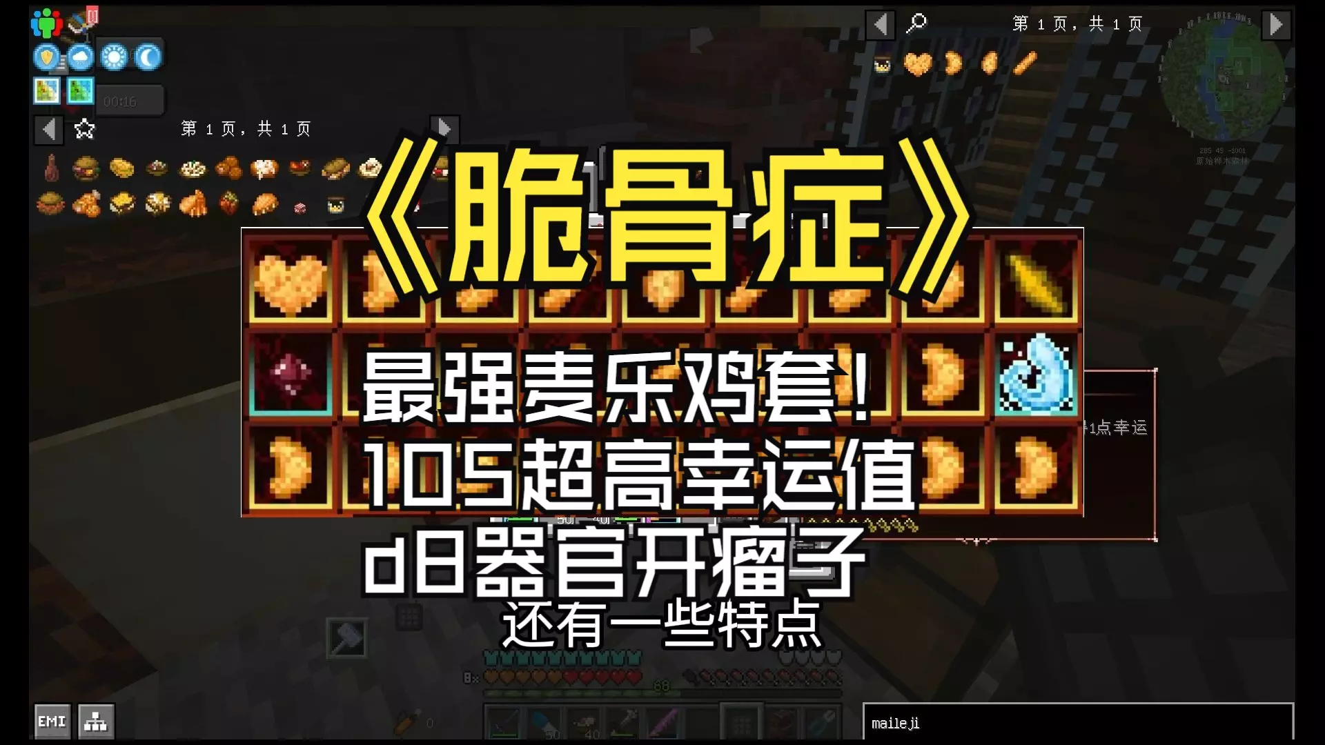 棒读 最近开学,在处理一些琐事,所以时间有点紧张,有些内容可能存在错误或者不足,欢迎大家在评论区指正 参考:[脆骨症0.32版本]大胃王流派前期/中期/后期器官搭配 - [NFWC]脆骨症 (No Flesh Within Chest) - MC百科|最大的Minecraft中文MOD百科 (mcmod.cn) https://www.mcmod.cn/post/4040.html 特别感谢: @已经天黑了嘛 本来想分成两期视频介绍,挤在一期视频介绍的问题就是对于一些操作缺乏演示不太详尽,而且这期视频的文案我其实是不太满意的 后续因为学业问题可能会放缓更新速度