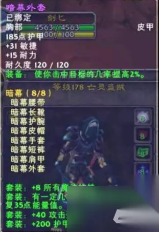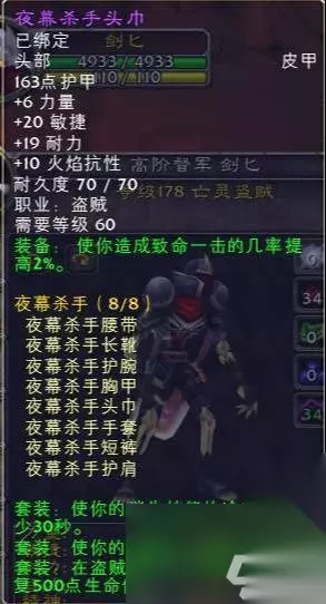 8件套 盗贼T1夜幕杀手套,属性也很好,建议出5件套属性,由于第一篇职业篇只做初略展示,之后会根据各个职业做出详细的装备推荐。