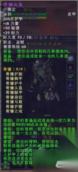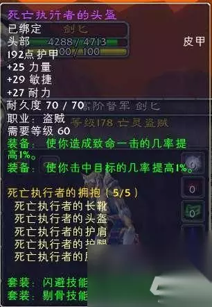 5件套 盗贼T2.5死亡执行者是一套进军终极副本纳克萨玛斯以前需要准备的套装,建议出4件另外4件装备配合之前提到的T0.5暗幕套触发回能量套装属性,以后会专题说明。