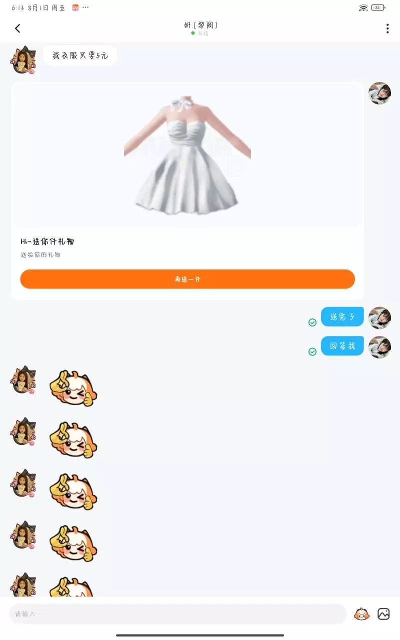今天送了一个人衣服