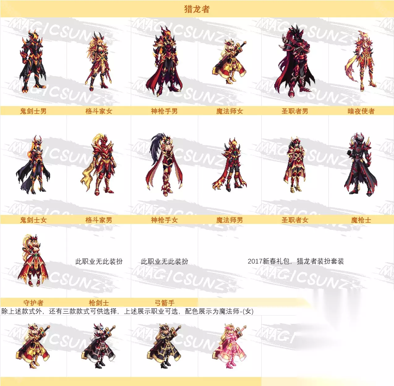 可换奖励二:绝版装扮礼盒 1、猎龙者礼包 每个职业提供3种款式选择