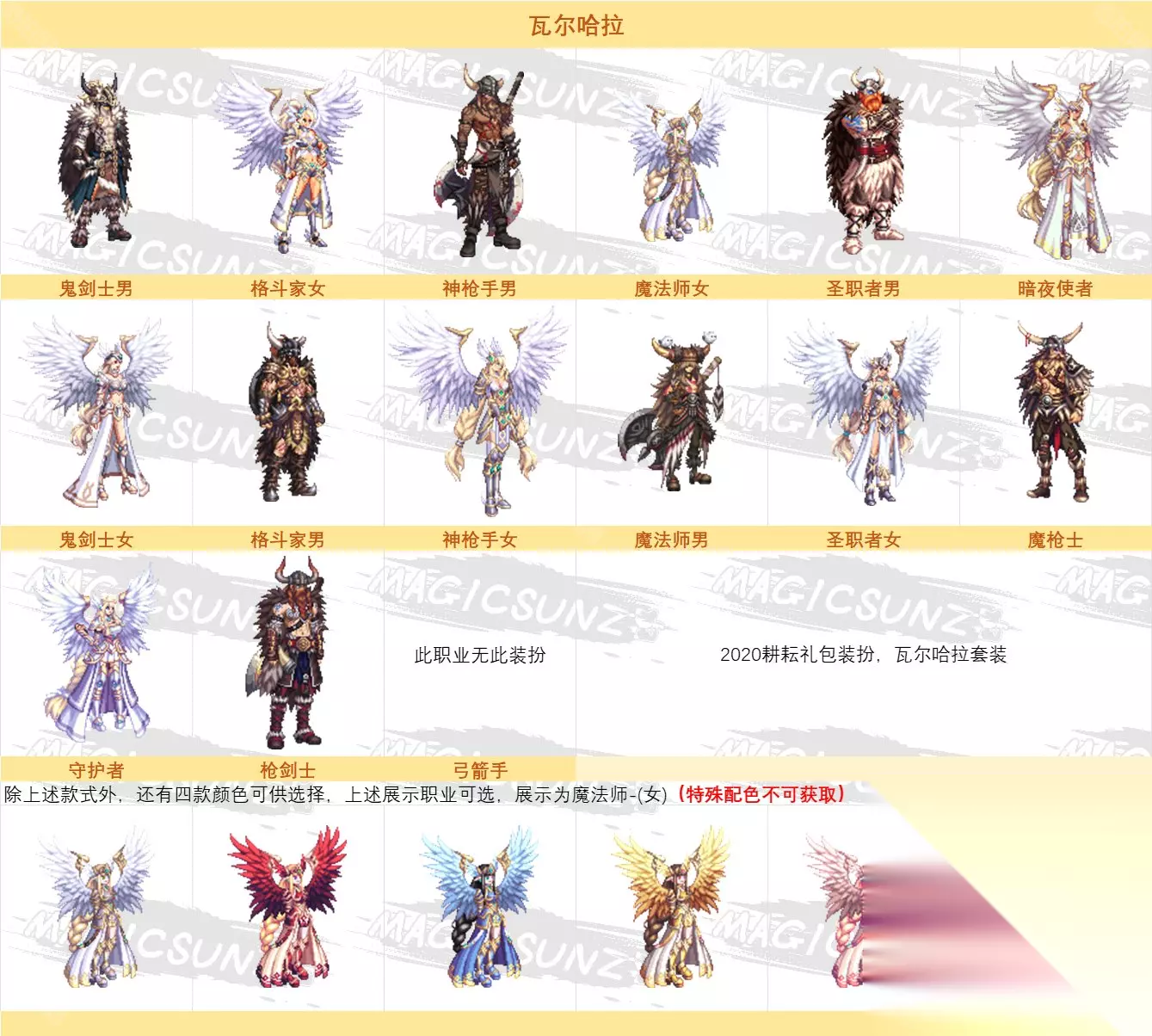 2、瓦尔哈拉礼包 每个职业提供4种款式选择