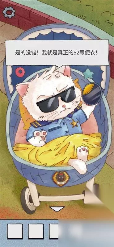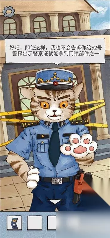 到达目的地,此处直接给婴儿出示证件可获得成就。 正常流程,向虎斑猫出示证件获得线索。