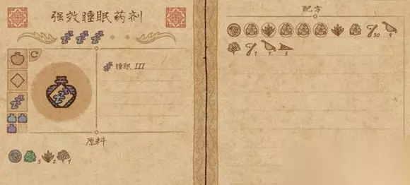 14.睡眠药剂 原料:沼泽菇+缠枝草+水之花+绿色蘑菇