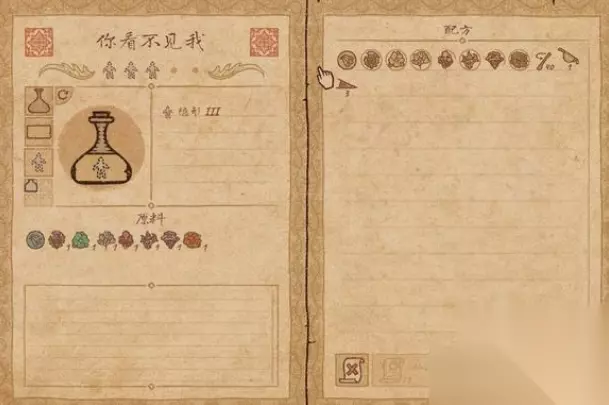 24.隐身药剂 原料:雷蓟+水之花+风之花+块状甜菜+巫术蘑菇+影子鸡油菇+硫磺架 ps:需要借助漩涡,具体如图