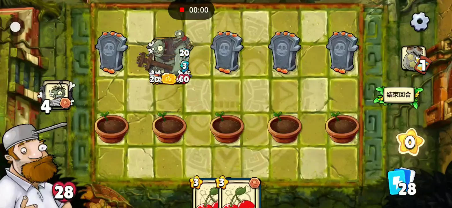哈哈开局遇满级巨人僵尸20伤害,60防御,并会召唤4个小鬼僵尸还有二爷,我一个樱桃炸弹能炸死才怪呢。