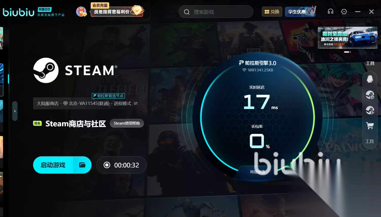 目前,biubiu在服务玩家上的诚意同样令人印象深刻,对于首次安装的玩家,可直接享有24小时稳定的加速服务,此外输入【biubiu不掉线】,即可在原有基础上再白嫖3天。综合叠加免费时长高达4天之久,大幅降低了玩家体验门槛。