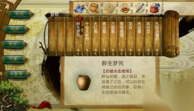 PS2:突然发现心宽体胖喝醉生梦死岂不是要上天? 醉生梦死:使用后悟性-30,攻击+60,防御+60;这再乘二。。。
