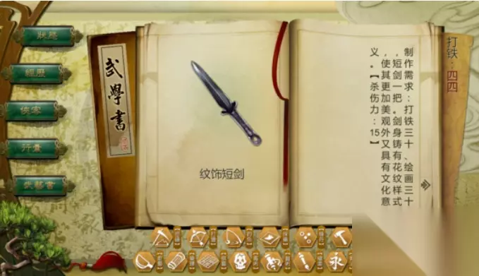 PS3:一个并没有太多用的新增剧情 第二年五月中旬 回合开始阶段三选一触发(选择逍遥谷) 条件:打铁30 绘画30 结果:获得新技艺书:打铁:纹饰短剑