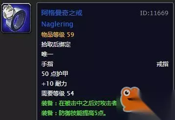 饰品:意志之力+暴君印记 暴君印记出自黑上击杀黑手的任务奖励,非常好入手。 意志之力出自黑石深渊的BOSS怒炉将军,几乎是前期唯一的加防御等级的蓝装,一定要入手一个。