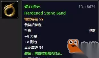 戒指:硬石指环、阿哥曼奇之戒 前期可以去拍卖行买两个硬石指环,物美价廉产量高,8力量8耐力3防御等级堪称绿装完美属性。 有时间可以去深渊刷一下傀儡师BOSS,入手一个阿格曼奇之戒,不过属性上差距不大。