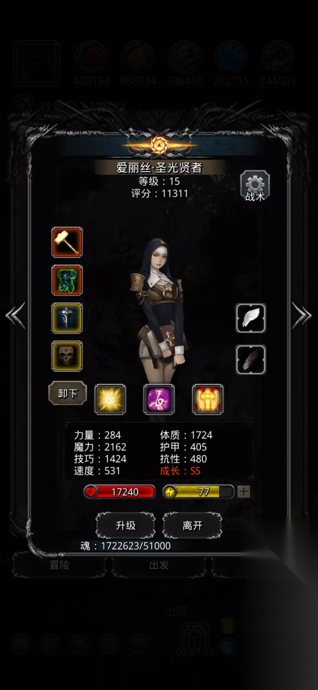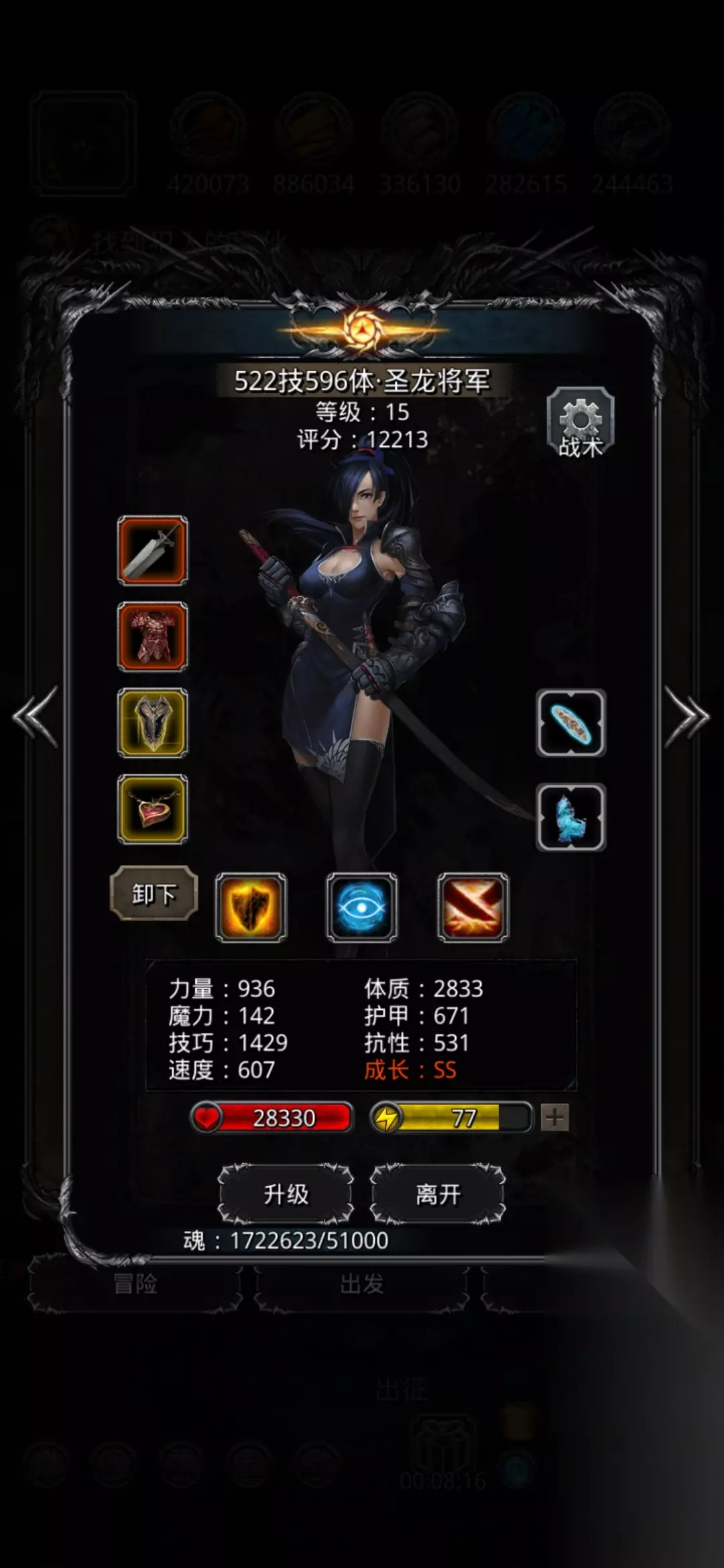 圣龙甲只有671,为了多点反伤,故意把甲压低了,但是血量够还是很稳的。