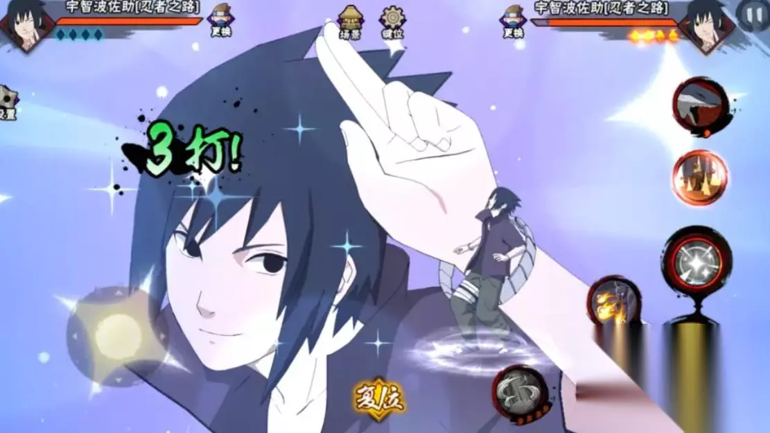 但是佐助很少用普通攻击来打输出,毕竟他的技能冷却时间很快,大多数情况下都是用技能打伤害。一技能是自己向着后方跃出,并朝着前方较远的位置丢出数枚附有雷系能量的手里剑。在手里剑丢完后原地会落下一朵玫瑰花,靠近将其捡起来后就能让普攻得到强化。效果是朝着前方突进尝试去抓取到目标,要是抓到的话就能散发出魅力或者千鸟进行攻击。强化普攻比较适合用来拉扯,并用抓取来消耗对方的霸体时间,后续接普通攻击就会直接打出第三段与第四段伤害。