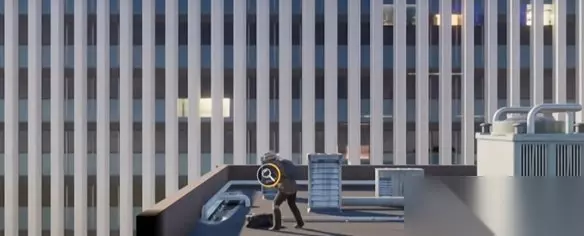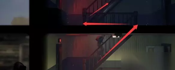 来到楼梯间爬到顶,然后一直向右走到头。