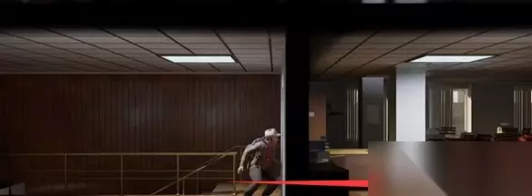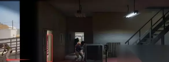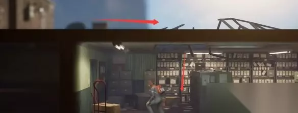 然后跳下来,可以转身解决木头下面的丧尸,然后往右边走进建筑里。