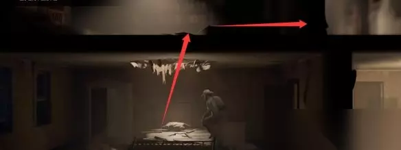 左右横跳一下,让它趴在易碎的木头上,掉下阁楼,然后我们按住shift可以跳过来。