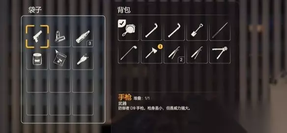 手枪:武器、防御者D9手枪,枪身虽小,但是威力强大。