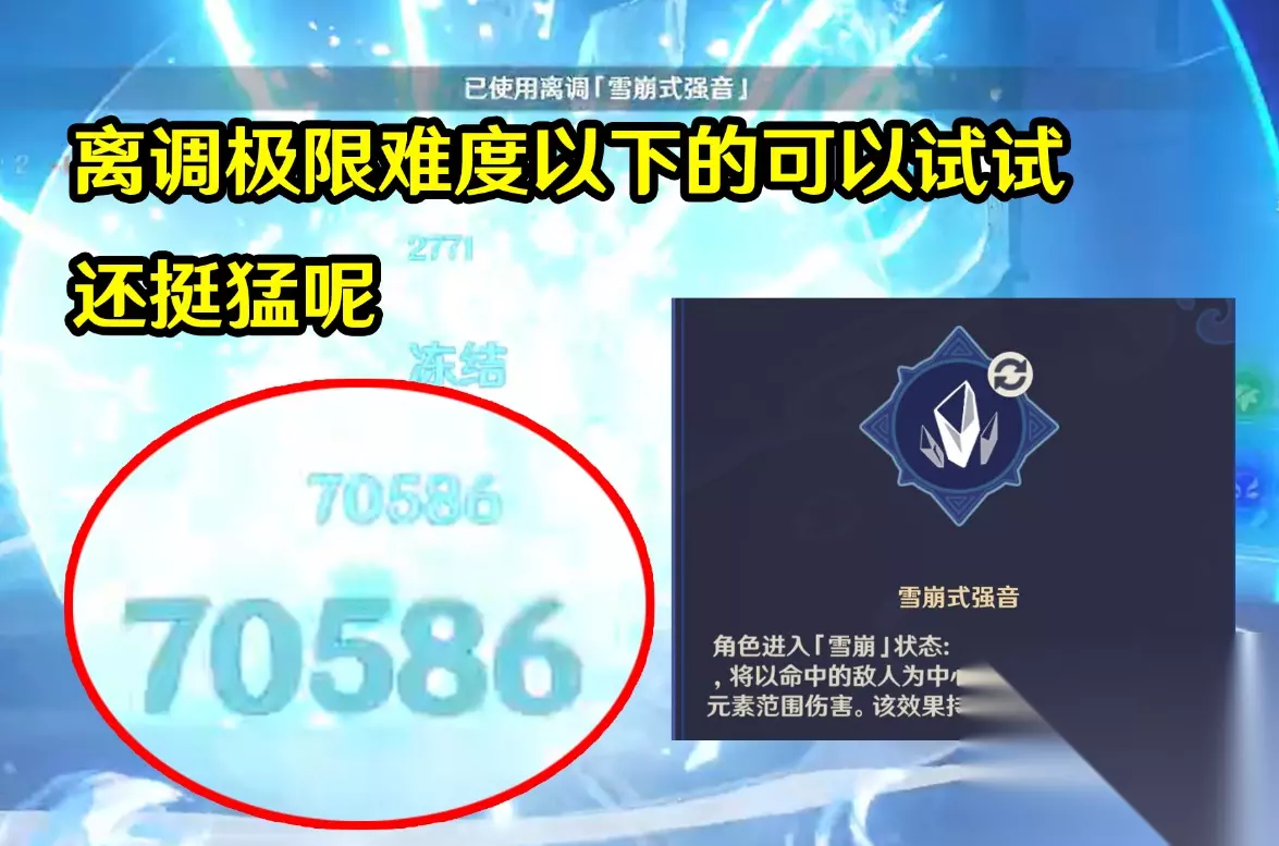 好像无相水没啥特别的毒点?理论上带个草系可以很快破周围水滴,基本就是纯考验伤害了。部分低练度摆烂玩家可以看下离调“雪崩式强音”,这玩意冻结触发的冲击波伤害还挺高。