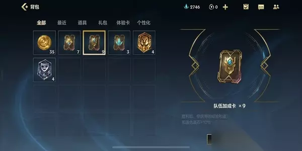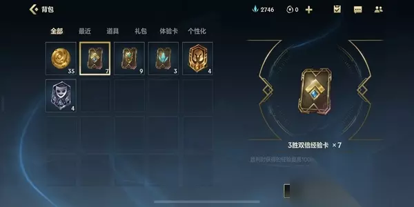 3、系统送了玩家很多张3胜双倍经验卡和队伍加成卡。 4、玩家在开局前记得打开背包使用这两张卡。