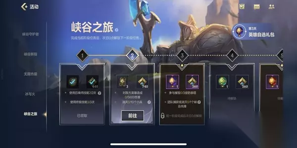 2、在活动中有一个【峡谷之旅】,完成每一阶段不同的任务就可以获得经验和大量奖励。