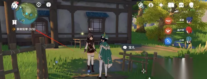 收集好之后,与宝儿对话,交付后可以看到,任务会提示已拿到1张货单。