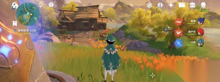 从神像锚点降落后走到箭头指示的位置,前方茅草屋的右边。