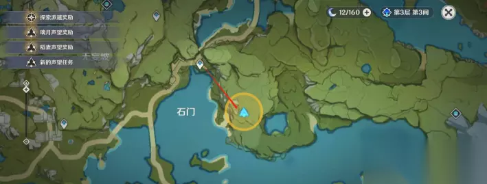 从石门上方的传送锚点处去到箭头指示的位置。